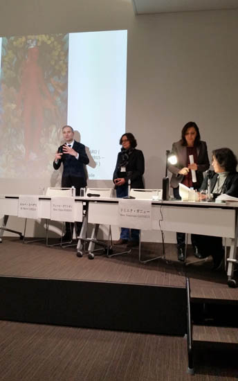 de gauche à droite : Hervé Cabezas, Claire Poirion, Dominique Gagneux, l'Interprète retour
